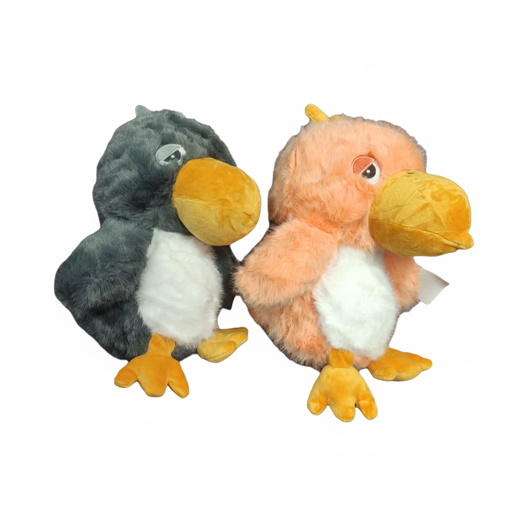 با نگاهی به تصاویر محصول، اولین چیزی که جلب توجه میکند، تناسبات بدنی عروسک است. این کلاغها دارای شکمی سفید و برجسته هستند که تضاد رنگی زیبایی با بدنه اصلی ایجاد کرده است. منقار زرد و درشت آنها، به همراه پاهای پهن، ایستایی نسبتاً خوبی به عروسک در حالت نشسته میدهد.